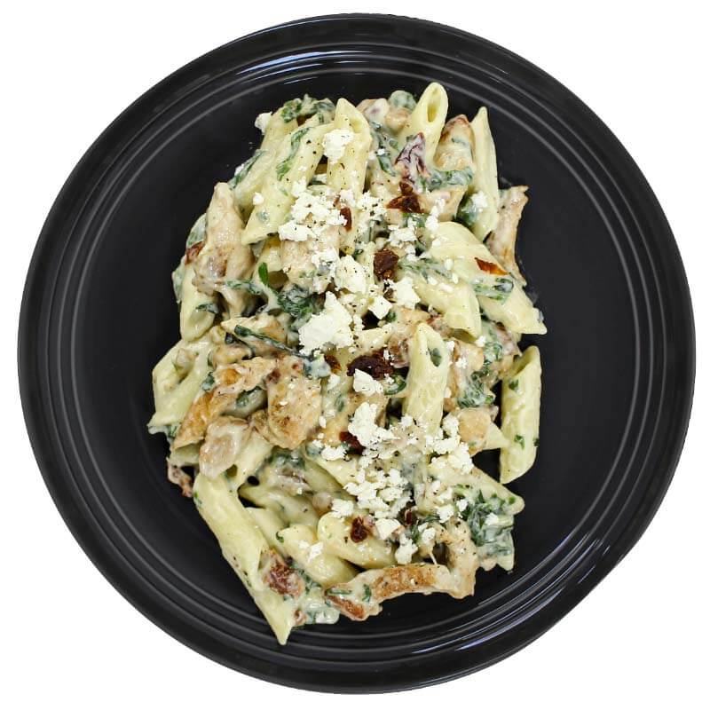 Al dente Penne pasta with Chicken tossed in a creamy spinach and sundried tomato sauce.