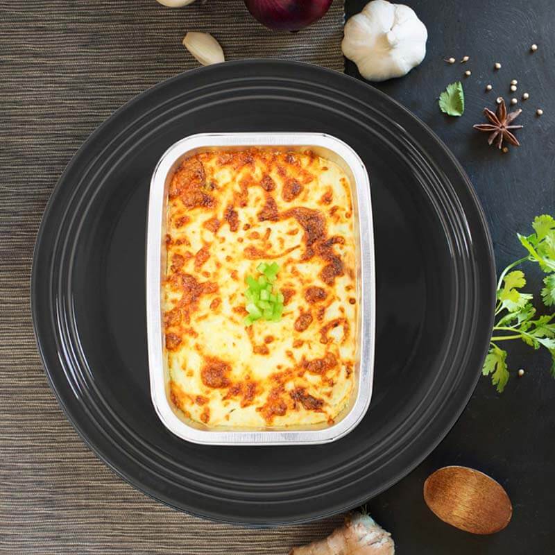 Classic Italian bake with thinly sliced Aubergine layered with a tomato sauce topped with cheese