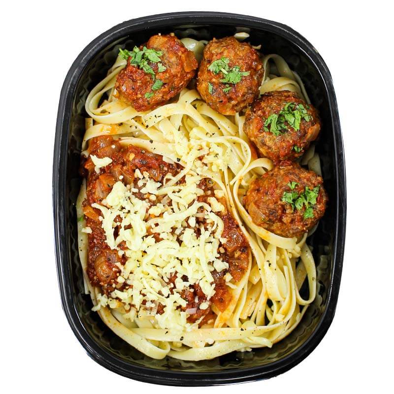 Ratatouille (44%) [Tomatoes (87.8%), Onions (38%), Olive Oil (1.3%), Pink Salt (0.42%), Garlic (0.42%), Black Pepper (0.25%)], Meatballs (39.6%) [Mince (79.3%) [Extra Lean Beef (41.2%), Peas (16.5%), Carrots (16.5%), Basmati Rice (16.5%), Long Life MILK (11%), EGGS (3.1%), Curry Powder (0.33%), Turmeric (0.05%)], Onions (11.9%), EGGS (4.8%), Bread Crumbs (4%) [Wheat Flour Fortified (Wheat Flour, Calcium Carbonate, Iron, Niacin, Thiamin), Salt, Dextrose]], Tag Pasta (16.5%) ( WHEAT)